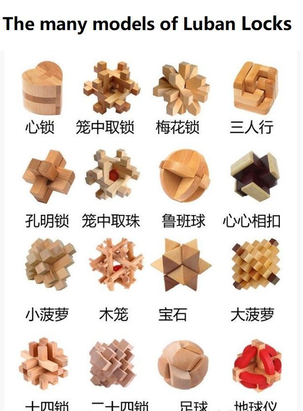 Below are some models of Lu Ban Locks which are a good mental exercise tool and they also help to develop patience for the puzzle solver.