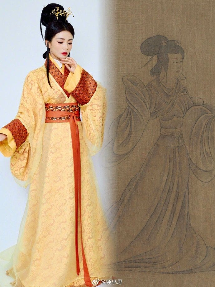 โ Refer to Pic 2 above. Similar to the Eastern Jin (ไธๆ) Hanfu depicted in Gu Kaizhi's (้กพๆบไน) painting "Wise and Benevolent Women" ใๅๅฅณไปๆบๅพใthat is shown on the right. Eastern Jin Hanfu followed the Han-style Hanfu i.e. Hanfu during the Han dynasty.